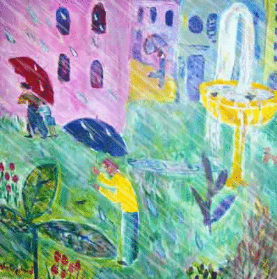 Malaga Spain in the Rain Painting by Faith Copeland
